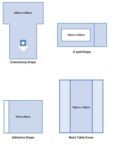 Medpro's Craniotomy Pack is specifically designed for craniotomy procedures, featuring a drape with a diamond-shaped fenestration.