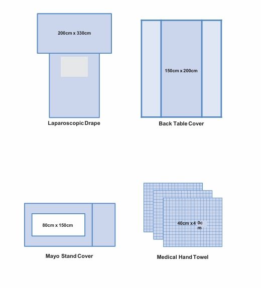 | Laparoscopic Drape (With Incise Drape & 3 positioned hooks) | 200cm X 330cm | 1PC |